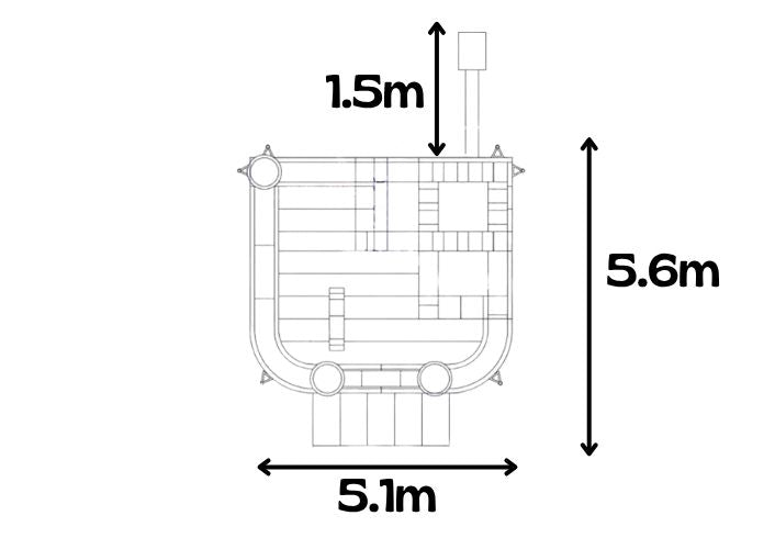 | Afmetingen (L × B × H) | 5,6 m x 5,1 m x 4,3 m |