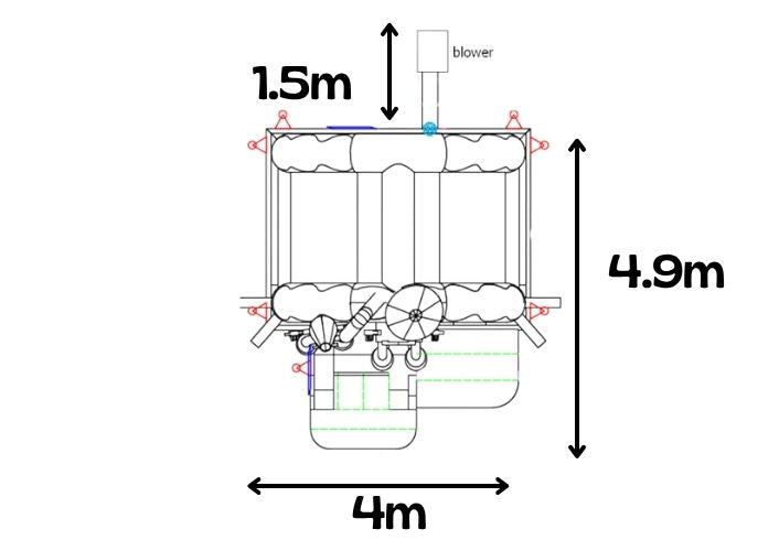 Afmetingen (L × B × H) | 4,9 m x 4,0 m x 4,0 m |